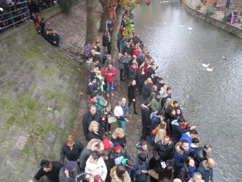 Η νεαρή στη συνέχεια ανέβηκε στη γέφυρα όπου ο Σεβασμιότατος κ. Χρυσόστομος της φόρεσε έναν χρυσό σταυρό και της ευχήθηκε καλή πρόοδο στη ζωή της.