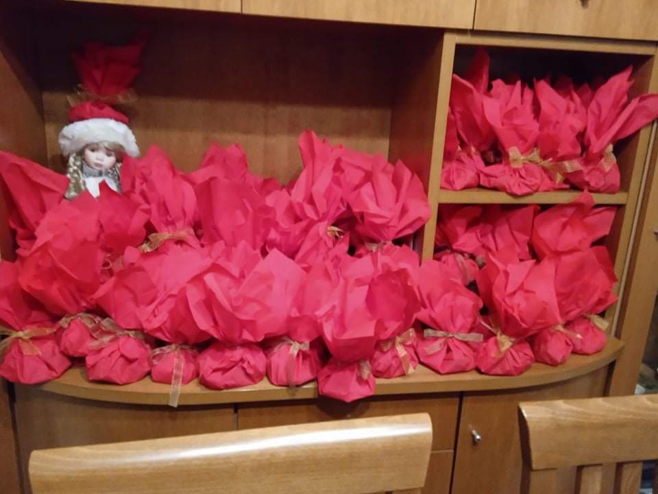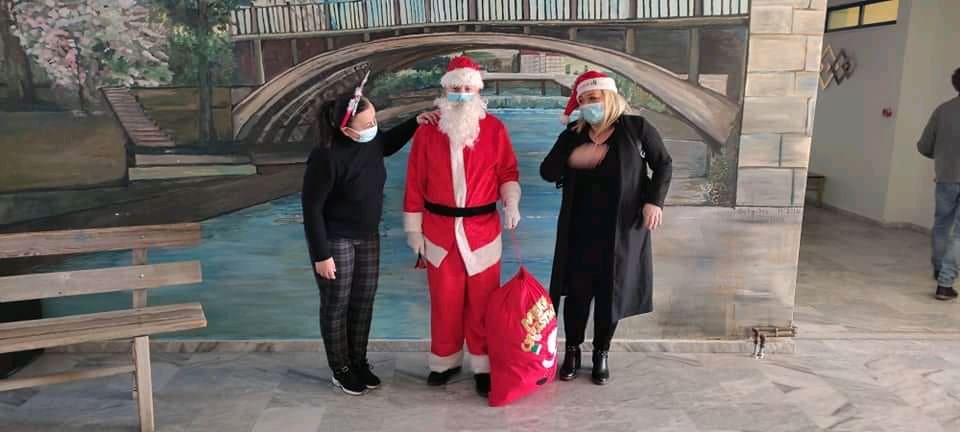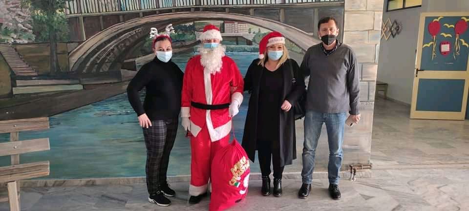 Στα παιδιά μοίρασε δώρα ο Αϊ Βασίλης, τον οποίο υποδύθηκε ο γνωστος Τρικαλινός ταξιτζής Αριστοτέλης Κερασοβίτης.