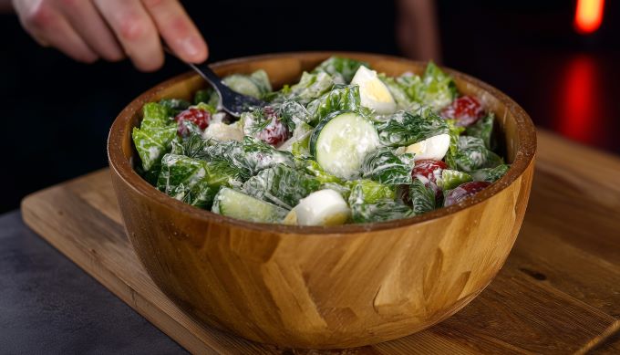 - Αλατοπιπερώνουμε τη σαλάτα προσθέτουμε το dressing ανακατεύουμε και απολαμβάνουμε.