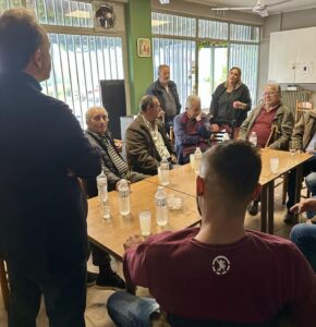 Παρουσία πλήθους πολιτών μίλησε ο υποψήφιος βουλευτής του ΠΑΣΟ Γιώργος Οικονόμου κατά την επίσκεψή του σε Αύρα και Σπαθάδες.