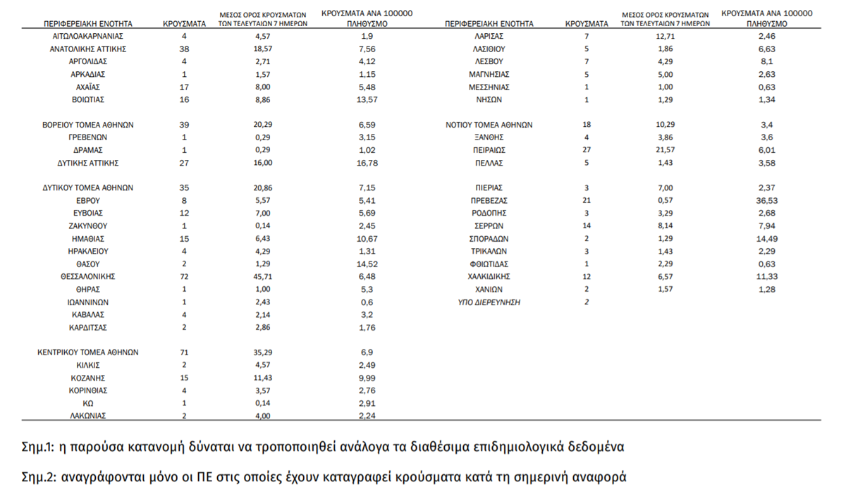 Στην Περιφερειακή Ενότητα Λάρισας ο αριθμός των κρουσμάτων παραμένει χαμηλός, με μόλις 7 να ανακοινώνονται σήμερα για τις τελευταίες 24 ώρες.