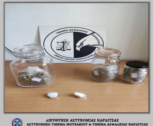 Η ναρκωτική ουσία κατασχέθηκε, ενώ σε νομότυπη έρευνα που ακολούθησε στην οικία του, από αστυνομικούς του Τμήματος Ασφάλειας Καρδίτσας, με τη συνδρομή αστυνομικού σκύλου της Διεύθυνσης Αστυνομίας Τρικάλων, βρέθηκε επιπλέον σε -3- γυάλινα βάζα και -1- συσκευασία από αλουμινόχαρτο και κατασχέθηκε, ποσότητα κάνναβης, βάρους -126,1- γραμμαρίων.