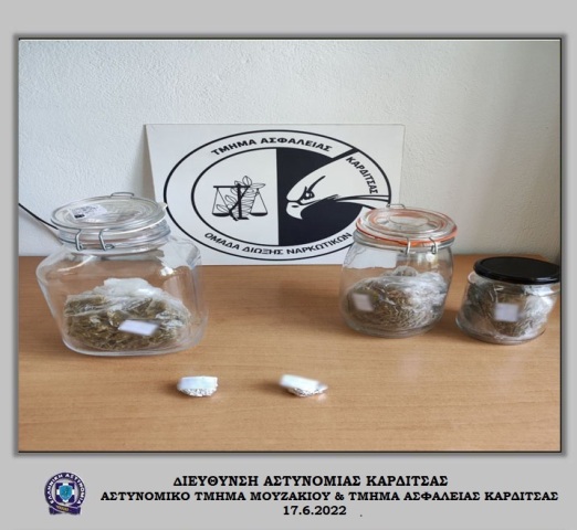 Η ναρκωτική ουσία κατασχέθηκε, ενώ σε νομότυπη έρευνα που ακολούθησε στην οικία του, από αστυνομικούς του Τμήματος Ασφάλειας Καρδίτσας, με τη συνδρομή αστυνομικού σκύλου της Διεύθυνσης Αστυνομίας Τρικάλων, βρέθηκε επιπλέον σε -3- γυάλινα βάζα και -1- συσκευασία από αλουμινόχαρτο και κατασχέθηκε, ποσότητα κάνναβης, βάρους -126,1- γραμμαρίων.