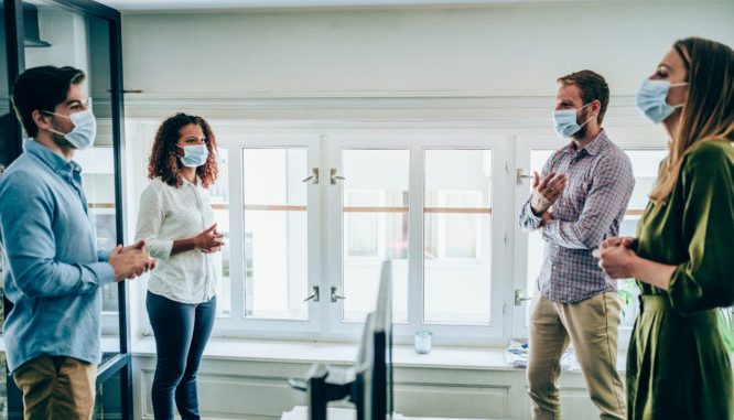 Και προσθέτει πως τον μεγαλύτερο κίνδυνο αντιμετωπίζουμε όταν βρισκόμαστε σε χώρους διαλείμματος, διατροφής ή συνεδριάσεων. Είναι αυτοί ακριβώς οι χώροι όπου μπορεί κάποιος να τρώει ή να πίνει και να μιλάει ταυτοχρόνως. Ας μην ξεχνάμε ότι ο κορωνοϊός μεταδίδεται κυρίως με τα αναπνευστικά σταγονίδια που τον φέρουν. Αυτά που εκπέμπονται με την ομιλία είναι τόσο μικρά, ώστε αιωρούνται αρκετή ώρα, διευκολύνοντας τη διασπορά του.