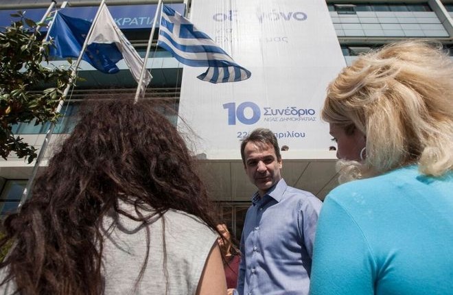 Μέσα σε αυτό το κλίμα έγινε σήμερα η παρουσίαση του συνθήματος του συνεδρίου της ΝΔ στη Συγγρού. Το συνθημα είναι “Οξυγόνο για την Ελλάδα μας” και τα γραφεία του κόμματος κάλυψε ένα τεράστιο πανώ με αυτό το μήνυμα.