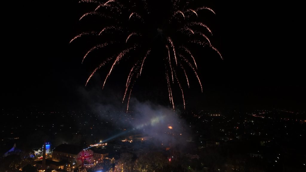 Ο Χρήστος Νέζος προϋπάντησε τον Δήμαρχο Τρικκαίων, ο οποίος, αφού συνομίλησε με τον Αγιο Βασίλη, έδωσε το έναυσμα για φαντασμαγορικά πυροτεχνήματα, θεατά από όλη την πόλη.