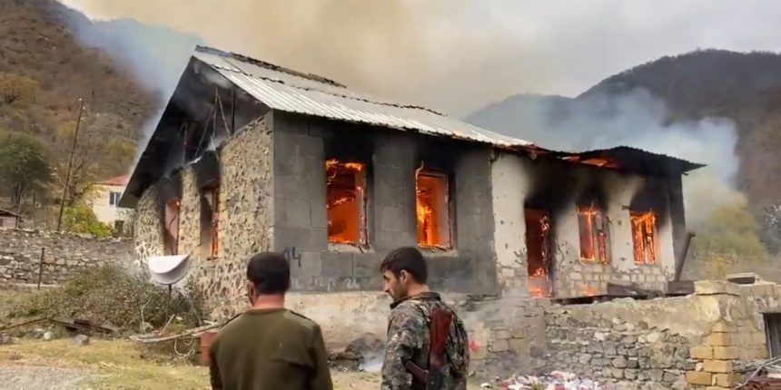 Μόνο σε αυτό το χωριό, που σηματοδοτεί το όριο με την γειτονική περιοχή του Μαρτακέρτ, που θα παραμείνει υπό τον έλεγχο των Αρμενίων, τουλάχιστον 6 κατοικίες καίγονταν σήμερα το πρωί. Οι φλόγες έβγαιναν από τα παράθυρα ενώ γκρίζος καπνός υψωνόταν στον ουρανό πάνω από την κοιλάδα της περιοχής.