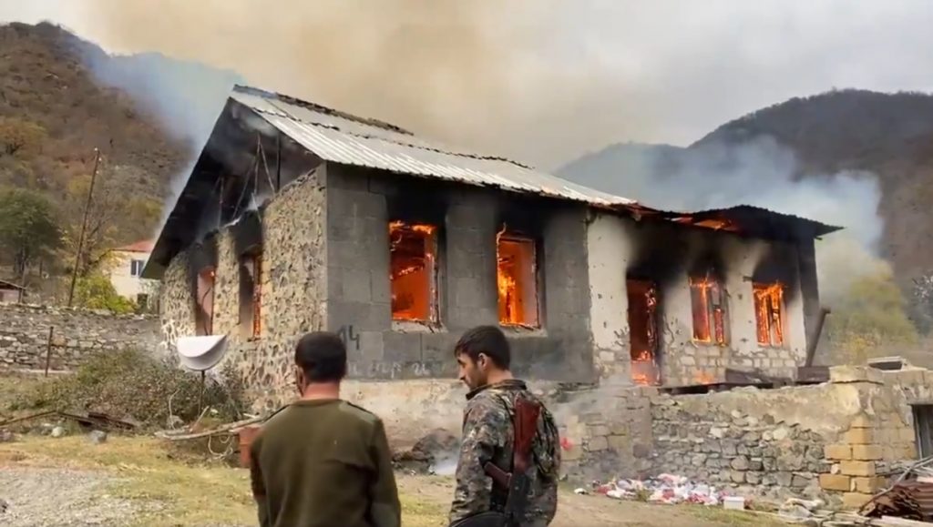 Μόνο σε αυτό το χωριό, που σηματοδοτεί το όριο με την γειτονική περιοχή του Μαρτακέρτ, που θα παραμείνει υπό τον έλεγχο των Αρμενίων, τουλάχιστον 6 κατοικίες καίγονταν σήμερα το πρωί. Οι φλόγες έβγαιναν από τα παράθυρα ενώ γκρίζος καπνός υψωνόταν στον ουρανό πάνω από την κοιλάδα της περιοχής.