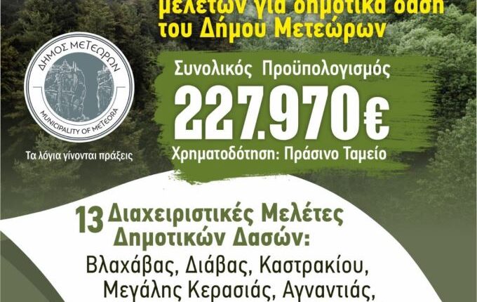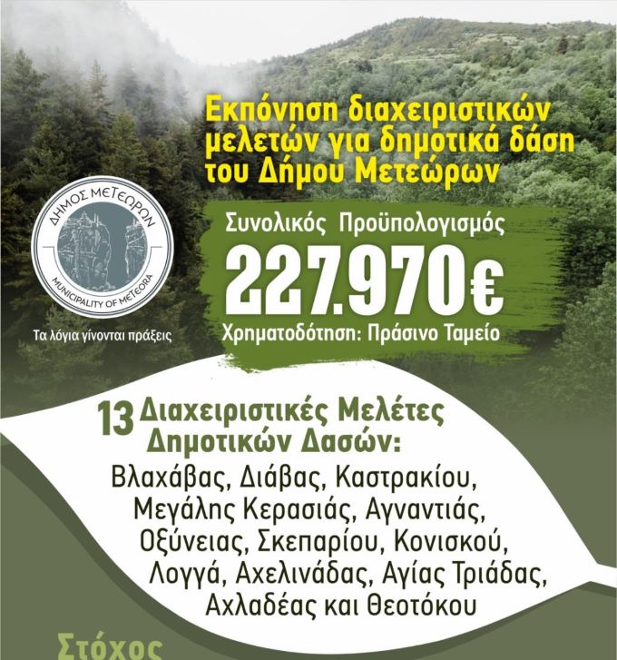 trikaladay.gr / Τοπικά / Νέα χρηματοδότηση ύψους 227.970 ευρώ για διαχειριστικές μελέτες δημοτικών δασών εξασφάλισε ο Δήμος Μετεώρων