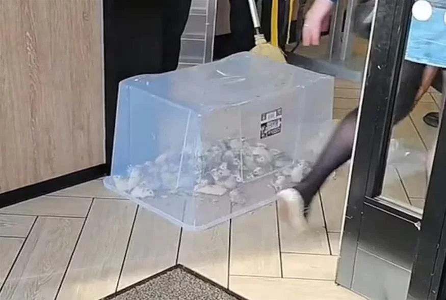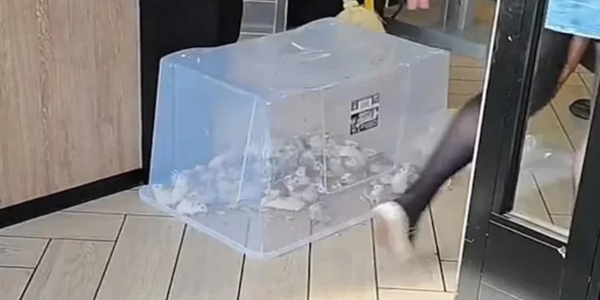 Δεύτερο περιστατικό με ακτιβιστή που πέταξε ποντίκια σε εστιατόρια των McDonald’s σημειώθηκε στο Μπέρμιγχαμ της Αγγλίας. Στο σχετικό βίντεο φαίνονται οι υπάλληλοι να προσπαθούν να τα παγιδεύσουν σε ένα πλαστικό κουτί, ενώ οι πελάτες κοιτούν απορημένοι