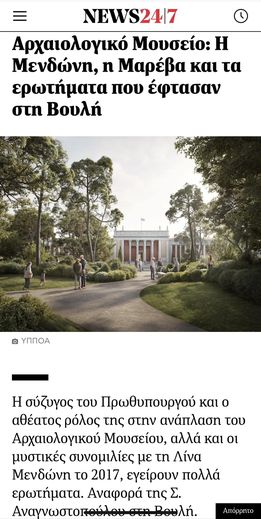 Με ποια ιδιότητα και για ποιο σκοπό η σύζυγος του Πρωθυπουργού και επιτυχημένη επιχειρηματίας κ. Μαρέβα Γκραμπόφσκι-Μητσοτάκη μετείχε από το 2017 σε συσκέψεις που αφορούσαν το Μουσείο;