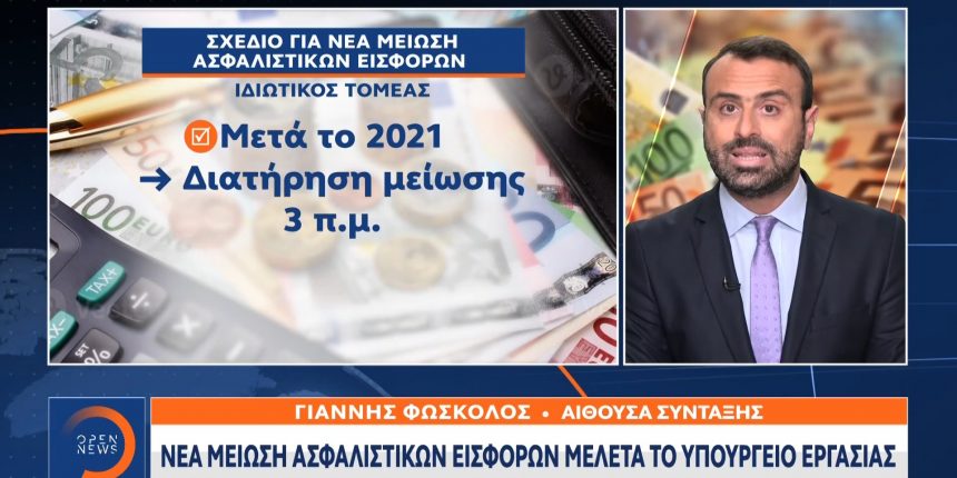 Την διατήρηση και μετά το 2021 της μείωσης των ασφαλιστικών εισφορών κατά 3 ποσοστιαίες μονάδες, που για την ώρα αφορά μόνο στην φετινή χρονιά επεξεργάζεται το υπουργείο Εργασίας. Ταυτόχρονα, όμως, μετρά -σύμφωνα με πληροφορίες του OPEN- τα περιθώρια και για μια νέα μείωση των ασφαλιστικών εισφορών, με στόχο μέχρι το 2023 η ελάφρυνση του μη μισθολογικού κόστους να φτάσει σωρευτικά στις 5 ποσοστιαίες μονάδες.
