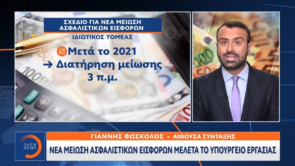 Την διατήρηση και μετά το 2021 της μείωσης των ασφαλιστικών εισφορών κατά 3 ποσοστιαίες μονάδες, που για την ώρα αφορά μόνο στην φετινή χρονιά επεξεργάζεται το υπουργείο Εργασίας. Ταυτόχρονα, όμως, μετρά -σύμφωνα με πληροφορίες του OPEN- τα περιθώρια και για μια νέα μείωση των ασφαλιστικών εισφορών, με στόχο μέχρι το 2023 η ελάφρυνση του μη μισθολογικού κόστους να φτάσει σωρευτικά στις 5 ποσοστιαίες μονάδες.