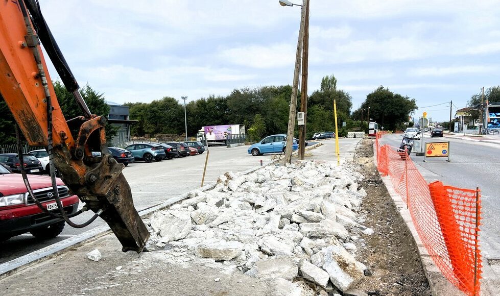 δεξιά πλευρά της οδού Καρδίτσης, όπου κατασκευάζονται νέα πεζοδρόμια για τους πολίτες.