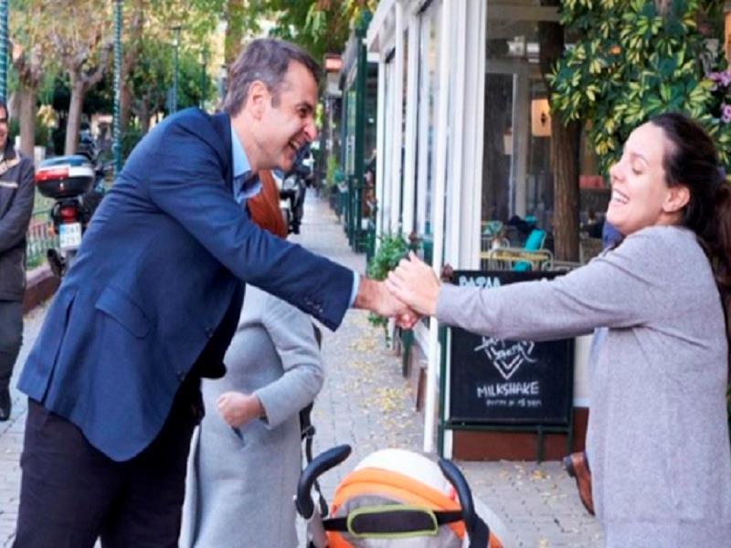 Μεταξύ άλλων, ο πρόεδρος της ΝΔ απέσπασε ένα… απρόσμενο κομπλιμέντο από μία νεαρή μητέρα η οποία έκανε βόλτα στη Φωκίωνος Νέγρη με το μωρό της.
