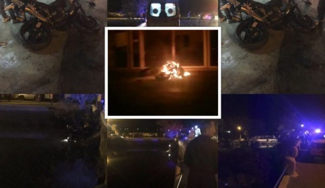 Η μοτοσυκλέτα σύρθηκε αρκετά μέτρα και άρπαξε φωτιά όπως μπορείτε να δείτε στο παρακάτω βίντεο: