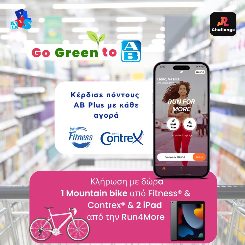 Βρες περισσότερες πληροφορίες για τον διαγωνισμό και τα δώρα στο https://run4more.gr/go-green-to-ab/ ή στο https://www.ab.gr/el/loyalty/pronomia/synergasies/run4more