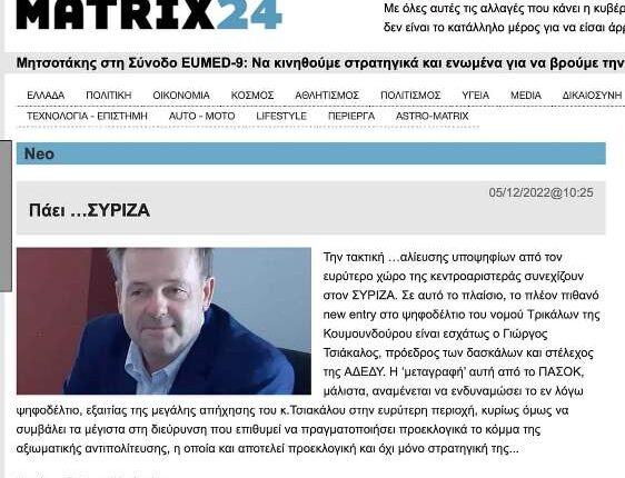 trikaladay.gr / Παραπολιτικά / Νέο δημοσίευμα αθηναϊκού ΜΜΕ για την υποψηφιότητα του Τρικαλινού εκπαιδευτικού Γιώργου Τσιάκαλου