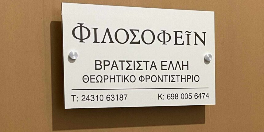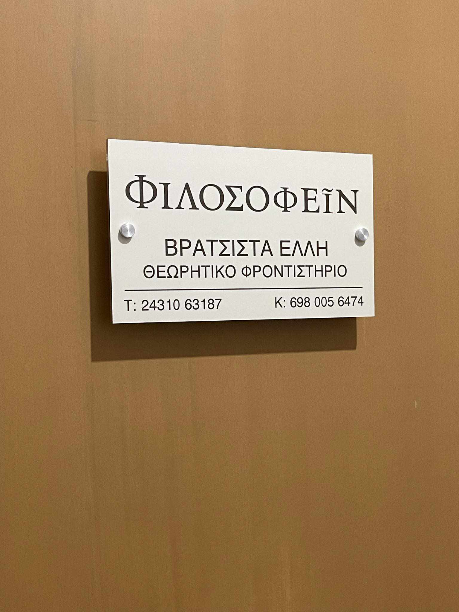Το νέο θεωρητικό φροντιστήριο «φιλοσοφειν» έχει ανοίξει επίσημα και βρίσκεται Βενιζέλου 7.Η καθηγήτρια Βρατσίστα Έλλη αναλαμβάνει την διδασκαλία θεωρητικών μαθημάτων γυμνασίου λυκείου και την μελέτη δημοτικού.Τα τμήματα έχουν αρχίσει και διαμορφώνονται και οι εγγραφές θα συνεχίσουν για λίγο ακόμα.Για πληροφορίες και εγγραφές καλέστε στο 6980056474.Ισχύουν πακέτα προσφορών και εκπτώσεις σε αδέρφια.