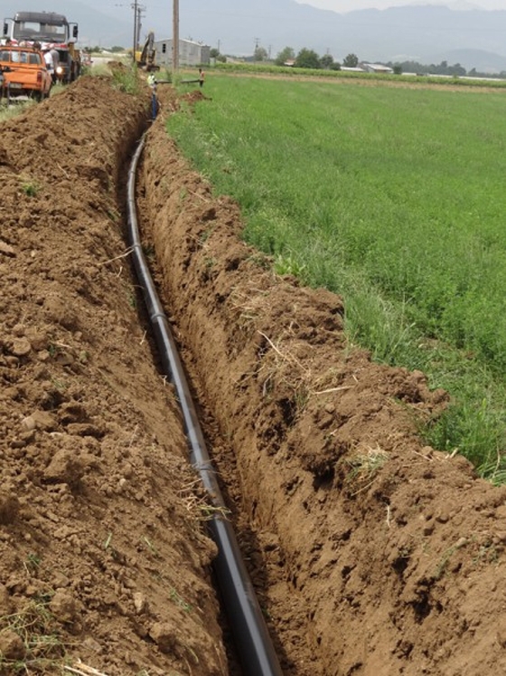 Υπενθυμίζεται ότι το έργο με τίτλο «ΚΑΤΑΣΚΕΥΗ ΔΙΚΤΥΩΝ ΑΡΔΕΥΣΗΣ Ν. ΤΡΙΚΑΛΩΝ», περιλαμβάνει την κατασκευή υπόγειων σωληνωτών αρδευτικών δικτύων υπό πίεση από P.V.C. 10 atm συνολικού μήκους 255.230 μέτρων, μετά των απαιτουμένων υδροληψιών, δικλείδων, αντιπληγματικών βαλβίδων και λοιπών εξαρτημάτων σε αγροκτήματα του Νομού Τρικάλων.