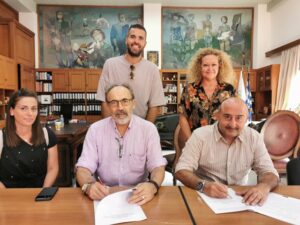 Τη σύμβαση υπέγραψε με τον εκπρόσωπο της εταιρείας «Ανταίος Κατασκευαστική Α.Ε.» ο