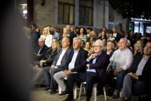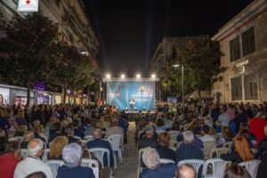 του προεκλογική ομιλία. Μπροστά από το Δημαρχείο, απέναντι από το εκλογικό κέντρο της