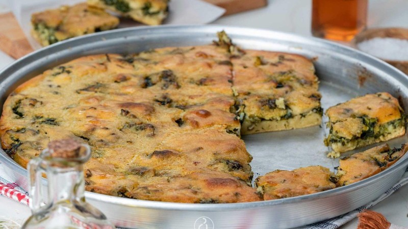 - Βουτυρώνουμε ή λαδώνουμε ένα ταψί 34 χ24 εκατ. ή ρηχό στρογγυλό ταψί 36 εκατ.