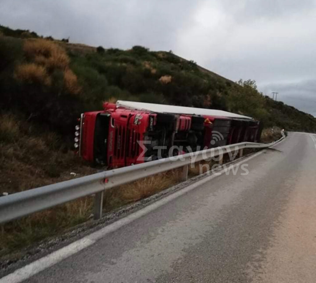 Φορτηγό εξετράπη της πορείας του για άγνωστη αιτία, με αποτέλεσμα να βγει εκτός δρόμου.