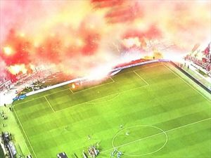Η απόφαση αυτή έκανε έξαλλο τον ποδοσφαιριστή του “δικεφάλου”, ενώ φωτοβολίδες άρχισαν να πέφτουν εντός του αγωνιστικού χώρου από την εξέδρα. Στο σημείο αυτό ο διαιτητής Ανδρέας Παππάς διέταξε την αποχώρηση των δύο ομάδων από τον αγωνιστικό χώρο.