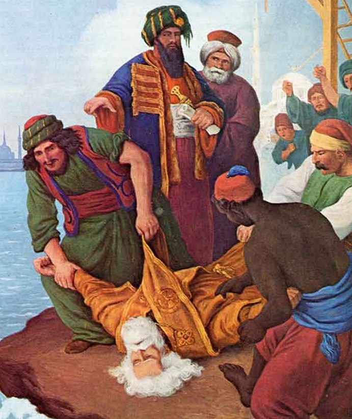 6.Ο Σουλτάνος στο τέλος θανάτωσε με οικτρό τρόπο τόσο τον Γρηγόριο Ε’ όσο και τον θρησκευτικό ηγέτη Χατζή ΧαλίλΕφέντη (Σεϊχουλισλάμης) που αρνήθηκε να εκδώσει φετφά (διαταγή) για τη σφαγή και εξόντωση των Ελλήνων, με το σκεπτικό ότι το κοράνι δεν επέτρεπε τη σφαγή αθώων.