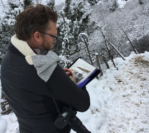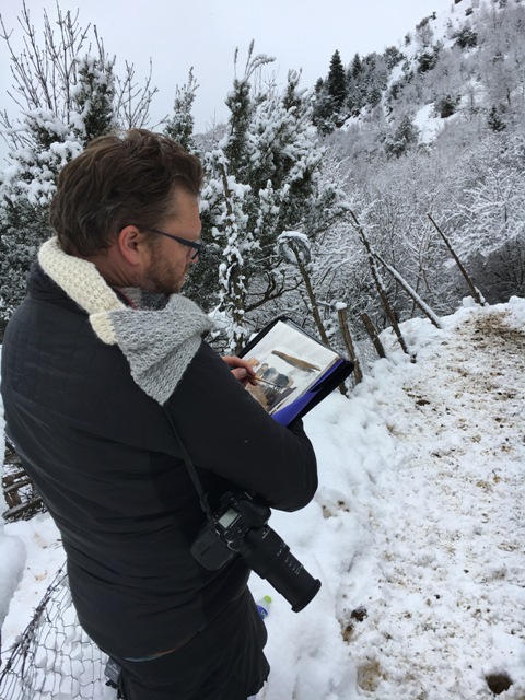 Το ταξίδι του Jason στην Ελλάδα ξεκίνησε την περασμένη εβδομάδα από την ορεινή καιχιονισμένη Αργιθέα, όπου παρά τη σφοδρή κακοκαιρία, βρέθηκε να ζωγραφίζει ζώα της Ελληνικής Βραχυκερατικής Φυλής αλλά και την απαράμιλλη ομορφιά των θεσσαλικών Αγράφων.