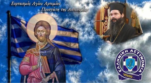 Ο Άγιος Αρτέμιος έδειξε ενδιαφέρον στοργή και αγάπη στους χριστιανούς στηλιτεύοντας την παρανομία έως θανάτου. Πολύ περισσότερο σήμερα ο Άγιος στέκεται άγρυπνος φρουρός και προστάτης των Αστυνομικών, οι οποίοι σαν φύλακες και φρουροί της εννόμου τάξεως, αγωνίζονται κοντά στο λαό για την αλήθεια, την ασφάλεια, την κοινωνική δικαιοσύνη, την ειρήνη, την ελευθερία, την γαλήνη και την τάξη, αξίες δηλαδή, για τις οποίες ο άγιος αγωνίστηκε μέχρι θανάτου. Ο Αστυνομικός σήμερα βρίσκεται αντιμέτωπος με πολλές καταστάσεις βίας και αντικοινωνικότητας και χρειάζεται στήριγμα πνευματικό ώστε να παραμένει ανεπηρέαστος από όλα αυτά. Ως Κληρικός μέσα στο Σώμα της Ελληνικής Αστυνομίας, μαζί στο Υπηρεσιακό καθήκον με κάθε Αστυνομικό, εύχομαι όλοι μας να στηρίζουμε τις ίδιες αξίες, προκειμένου να έχουμε μία Αστυνομία δίπλα στον Έλληνα πολίτη. Χρόνια Πολλά σε όλους τους Αστυνομικούς και ο Άγιος να σκεπάζει και τις οικογένειές τους.