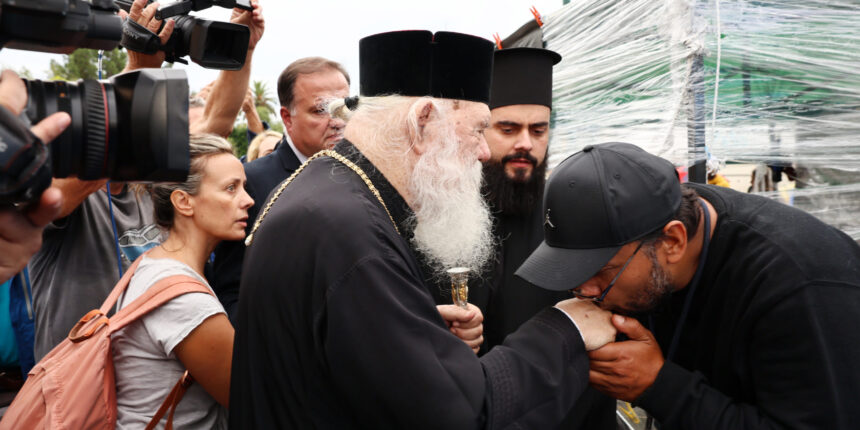 Ο Αρχιεπίσκοπος Ιερώνυμος επισκέφθηκε τον απεργό πείνας Πάνο Ρούτσι στο Σύνταγμα για να εκφράσει τη στήριξή του.