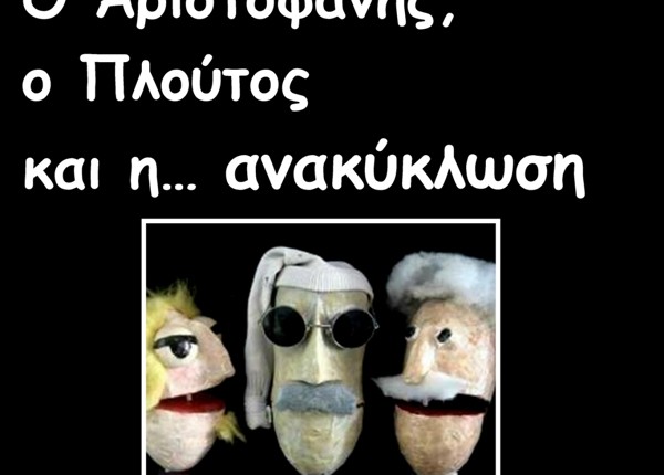 Αυτό το Σάββατο 23 Ιανουαρίου, το Μεταθέατρο Κέντρο Τέχνης, (Κεντρική Πλατεία-Πάνω από το Καφέ Μικέλ – Α΄Όροφος) σας δίνει την ευκαιρία μέσα από τη σκηνή του «Κουκλοθέατρο Ονειρόδραμα» να παρακολουθήσετε την παράσταση «Ο ΑΡΙΣΤΟΦΑΝΗΣ, Ο ΠΛΟΥΤΟΣ ΚΑΙ Η…ΑΝΑΚΥΚΛΩΣΗ».