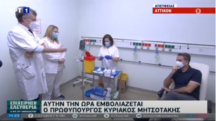 Στο “Αττικόν” εμβολιάστηκε για τον κορονοϊό ο Πρωθυπουργός, Κυριάκος Μητσοτάκης. Παρών στη διαδικασία ήταν και ο καθηγητής, Σωτήρης Τσιόδρας, ο οποίος τον υποδέχθηκε και στο νοσοκομείο. Πριν ο Κυριάκος Μητσοτάκης κάνει το εμβόλιο, οι δύο άνδρες είχαν έναν σύντομο διάλογο. “Σωτήρη αυτές είναι οι δόσεις;” ρώτησε τον καθηγητή λοιμωξιολογίας. “Αυτές είναι οι πέντε δόσεις” απάντησε ο κ. Τσίοδρας και ανέλυσε στον Πρωθυπουργό την αναλογία με τα ml. “Είναι ακριβώς 1,8 ή λίγο παραπάνω” συνέχισε ο Πρωθυπουργός. Ο κ. Τσιόδρας έδωσε τον λόγο στη νοσηλεύτρια που είχε αναλάβει να κάνει το εμβόλιο στον Πρωθυπουργό και εκείνη με τη σειρά της απάντησε καταφατικά στην ερώτηση του Πρωθυπουργού.