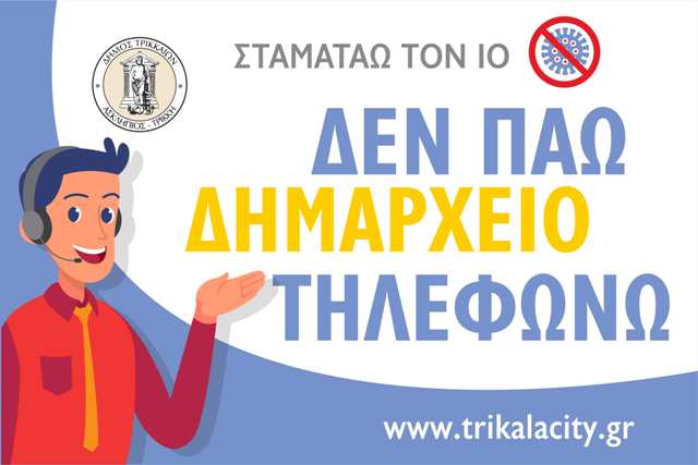Υπενθυμίζει επίσης και απευθύνει ΕΚΚΛΗΣΗ στους πολίτες να μην προσέρχονται στο Δημαρχείο και τις υπηρεσίες, καθώς έτσι κι αλλιώς λειτουργούν με μειωμένο προσωπικό. Αντιθέτως, ο Δήμος Τρικκαίων από την αρχή της κρίσης έχει φροντίσει να λειτουργεί για τον πολίτη με άμεση τηλεφωνική εξυπηρέτηση τηλεφωνική. Αν, μάλιστα, υπάρχει ανάγκη για φάρμακα, τρόφιμα, συναλλαγές με το δημόσιο, ο Δήμος αναλαμβάνει να μεταφέρει όσα είναι απαραίτητα.