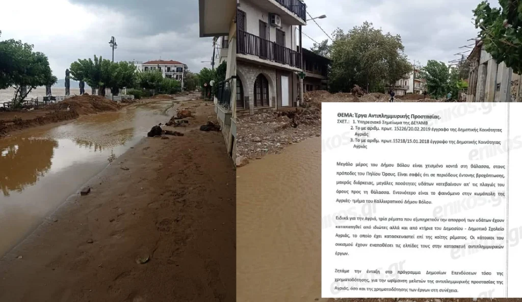 Το enikos.gr αποκαλύπτει σήμερα τα έγγραφα που είχε αποστείλει ο Δήμος Βόλου από το 2018, «χτυπώντας καμπανάκι» ιδίως για την Αγριά, όπου το Δημοτικό Σχολείο, όπως είχε ενημερώσει ο κ. Μπέος, έχει κατασκευαστεί επί κοίτης ρέματος. Σημειώνεται ότι το πέρασμα της κακοκαιρίας Daniel από τον Βόλο και την συγκεκριμένη συνοικία ήταν καταστροφικό. Δρόμοι έγιναν λίμνες, ενώ τα ορμητικά νερά μπήκαν σε σπίτια και προκάλεσαν σοβαρές ζημιές.