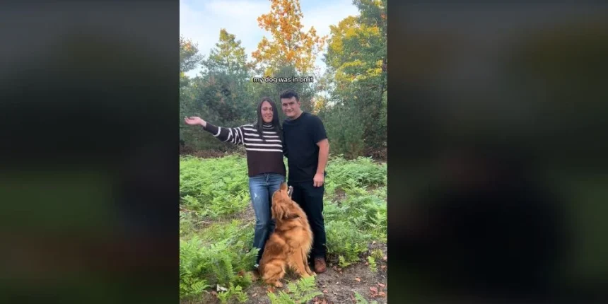 Η σκηνή ξεκινά αρκετά αθώα. Υπάρχει ένα όμορφο σκηνικό, ένα ζευγάρι ποζάρει για κάτι που φαίνεται να είναι μια χαλαρή φωτογραφία. Ωστόσο, καθώς το ζευγάρι χαμογελά στην κάμερα, το Golden Retriever τους – ξεκάθαρα ξεσπώντας από ενθουσιασμό – αρχίζει να κάνει κύκλους γύρω τους. Τώρα, όποιος είναι εξοικειωμένος με την συγκεκριμένη ράτσα ξέρει ότι δεν είναι από αυτούς που κρύβουν τα συναισθήματά τους.