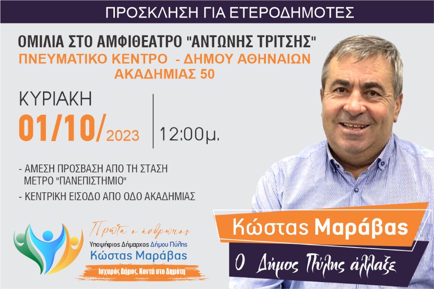 νέου υποψήφιος Κώστας Μαράβας. Την Κυριακή 1 Οκτωβρίου στις 12 το μεσημέρι