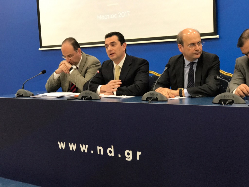 Τους βασικούς άξονες του προγράμματος της Νέας Δημοκρατίας για την ενέργεια παρουσιασαν σήμερα στα γραφεία του κόμματος ο αρμόδιος για την κατάρτιση του προγράμματος Αντιπρόεδρος κ. Κωστής Χατζηδάκης, ο Τομεάρχης Περιβάλλοντος και Ενέργειας κ. Κώστας Σκρέκας, ο Αν. Τομεάρχης Περιβάλλοντος και Ενέργειας κ. Κώστας Κατσαφάδος και ο Υπεύθυνος Προγράμματος του κόμματος κ. Γιώργος Στεργίου.