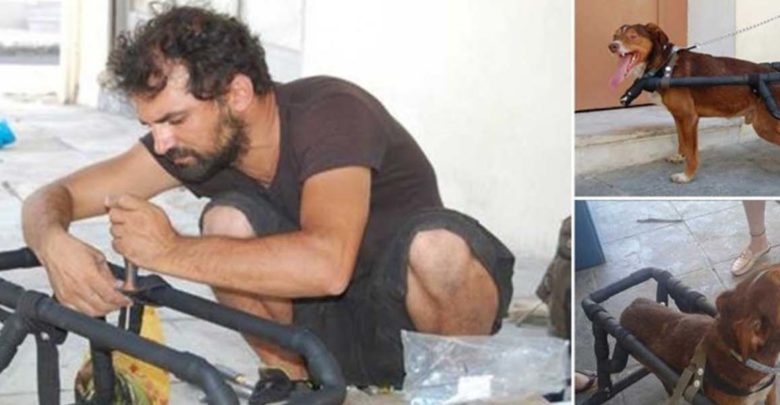Ο Βασίλης Τζιγκούρας, υδραυλικός στο επάγγελμα και φιλόζωος…στην ψυχή, αποφάσισε με τις γνώσεις και τις δεξιότητές του να βοηθήσει ανάπηρα τετράποδα. Και το πέτυχε.