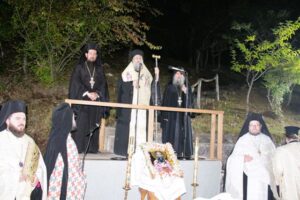 Γαρδικίου και Πύλης κ. κ. Χρυσόστομος συνεπικουρούμενος από τον Καθηγούμενο