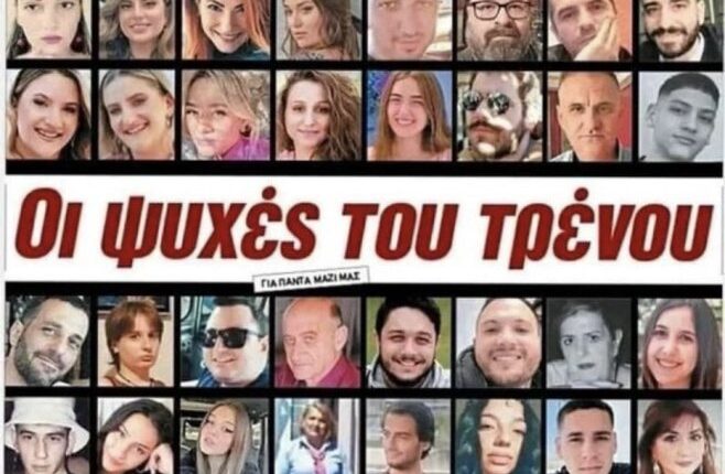 Την ανάρτηση συνοδεύει με ένα κολάζ των 57 θυμάτων στα Τέμπη, με τον τίτλο «Οι ψυχές του τρένου για πάντα μαζί μας».