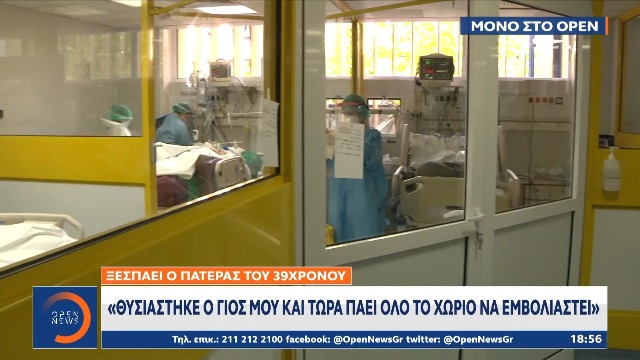 Τη μάχη με τον κορωνοϊό έχασε σήμερα στο νοσοκομείο ΑΧΕΠΑ ένας ακόμη νέος άνθρωπος, 39 ετών, πατέρας δύο ανήλικων παιδιών και δίχως προβλήματα υγείας, από την Άσσηρο Θεσσαλονίκης. Στη ΜΕΘ του νοσοκομείου «Παπαγεωργίου» συνεχίζει να νοσηλεύεται η μητέρα του, ενώ ο πατέρας του, μιλώντας στο ΟΡΕΝ, λέει ότι ο ίδιος είναι ο μόνος στην οικογένεια που έχει κάνει το εμβόλιο. Όπως αναφέρει, μετά τη θυσία του γιου του, πλέον όλο το χωριό πάει να εμβολιαστεί.
