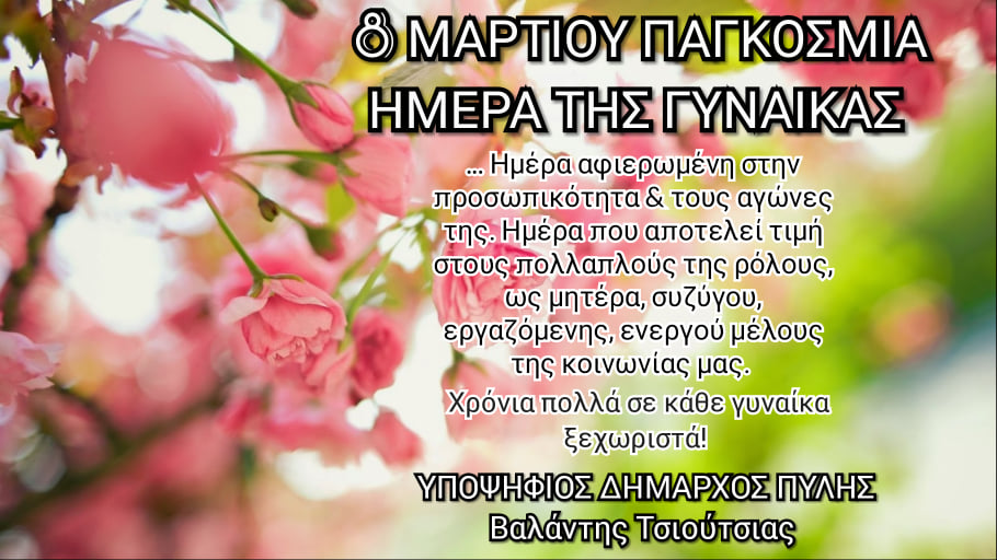 trikaladay.gr / Άρθρα / Ο υποψήφιος δήμαρχος Πύλης Β. Τσιούτσιας για την Παγκόσμια Ημέρα της Γυναίκας