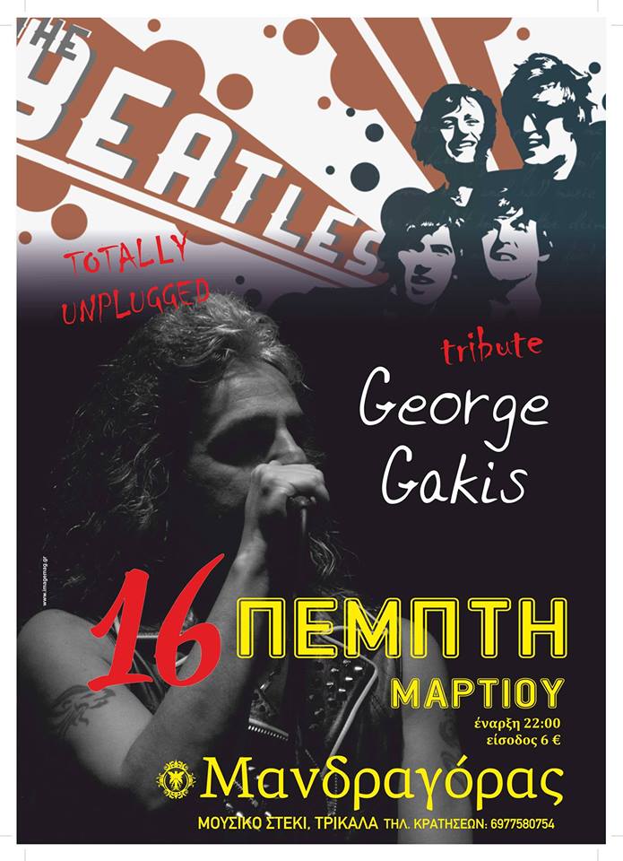 GEORGE GAKIS acoustic tribute to the BEATLES Πέμπτη 16 Μαρτίου