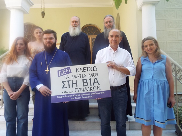 Ισχυρό μήνυμα από την Ιερά Μητρόπολη Τρίκκης και Σταγών, που στηρίζει το έργο του Κέντρου Συμβουλευτικής Υποστήριξης Γυναικών Θυμάτων Βίας Δήμου Τρικκαίων. Στη σημερινή φωτογράφιση των ιερέων με τον αντιδήμαρχο Κοινωνικής Μέριμνας του Δήμου Τρικκαίων κ. Κώστα Ψύχο, εστάλη ξανά το μήνυμα της εκστρατείας του Κέντρου με τίτλο «ΔΕΝ ΚΛΕΙΝΩ ΤΑ ΜΑΤΙΑ ΜΟΥ ΣΤΗ ΒΙΑ ΚΑΤΑ ΤΩΝ ΓΥΝΑΙΚΩΝ». Παρόντα και στα στελέχη του Κέντρου, που συνεχίζουν την εκστρατεία στον Δήμο Τρικκαίων.
