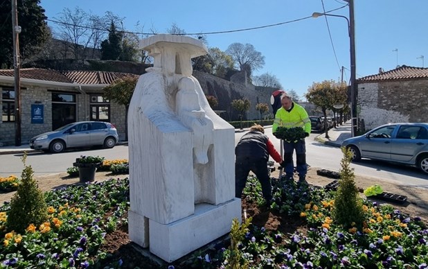 Με νέα όψη και άγαλμα ο κυκλικός κόμβος στο Μαιευτήριο, λίγο πριν τη γέφυρα περιοχής Τρικκαίογλου.