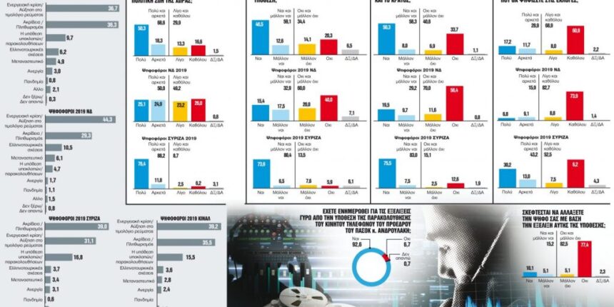 Η υπόθεση των τηλεφωνικών παρακολουθήσεων έχει εγείρει σειρά ερωτημάτων, προκαλεί αμηχανία στο εσωτερικό της ΝΔ και πλήττει το πρωθυπουργικό προφίλ του κ. Μητσοτάκη, καθώς το 59,1% θεωρεί ότι υπάρχει ευθύνη του Πρωθυπουργού.