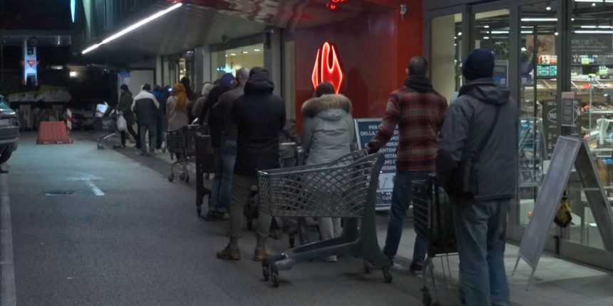 Η δραματική ανακοίνωση της ιταλικής κυβέρνησης δεν προκάλεσε μόνο παγκόσμιο σοκ αλλά και αμόκ στους Ιταλούς, που βγήκαν σχεδόν μεσάνυχτα για να βρουν σούπερ μάρκετ που να δουλεύει 24 ώρες το 24ωρο για να κάνουν τα απαραίτητα ψώνια πριν κλειστούν στα σπίτια τους.